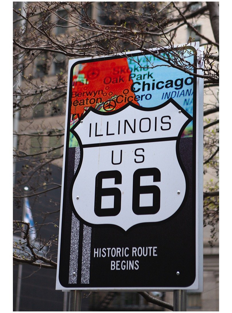 View fullsize Chicago, the beginning of historic Route 66 (fun history look-up). This was shot after the sign was replaced from being covered by stickers, but who knows how long that lasted...